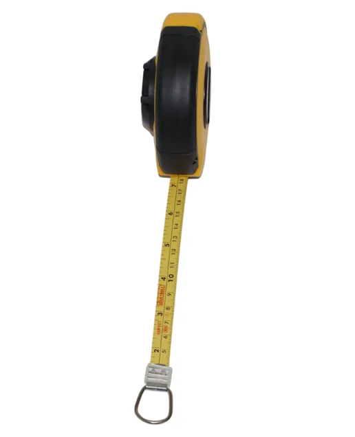 Cinta métrica de acero de 30 metros con sistema de rebobinado 3:1 que reduce el esfuerzo al recoger la cinta. Diseñada para uso intensivo en faenas, combina cuerpo plástico resistente y cinta metálica graduada en milímetros y pulgadas, ideal para medir distancias medias con rapidez.