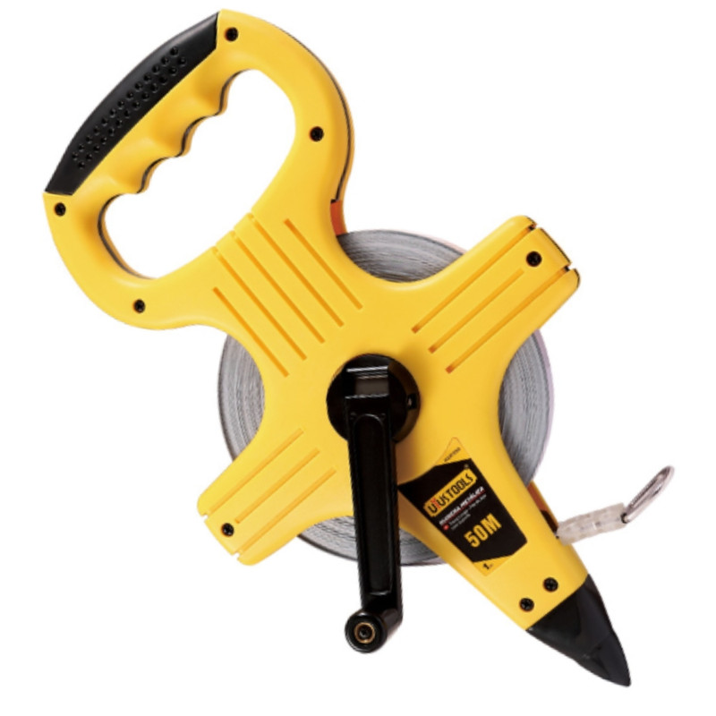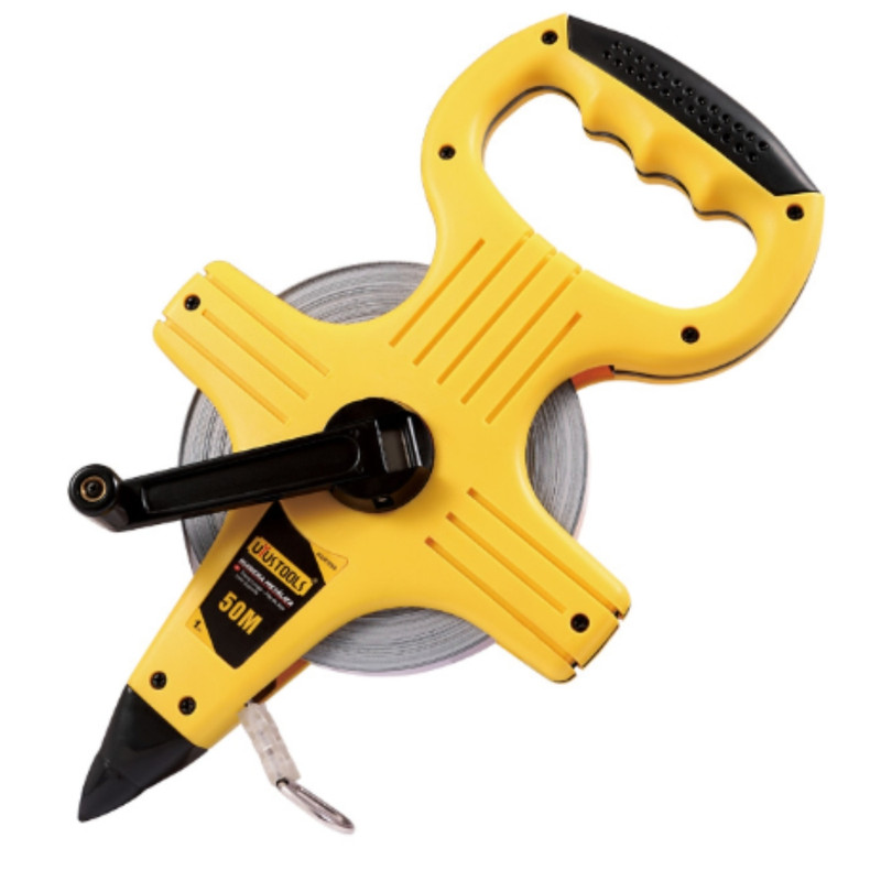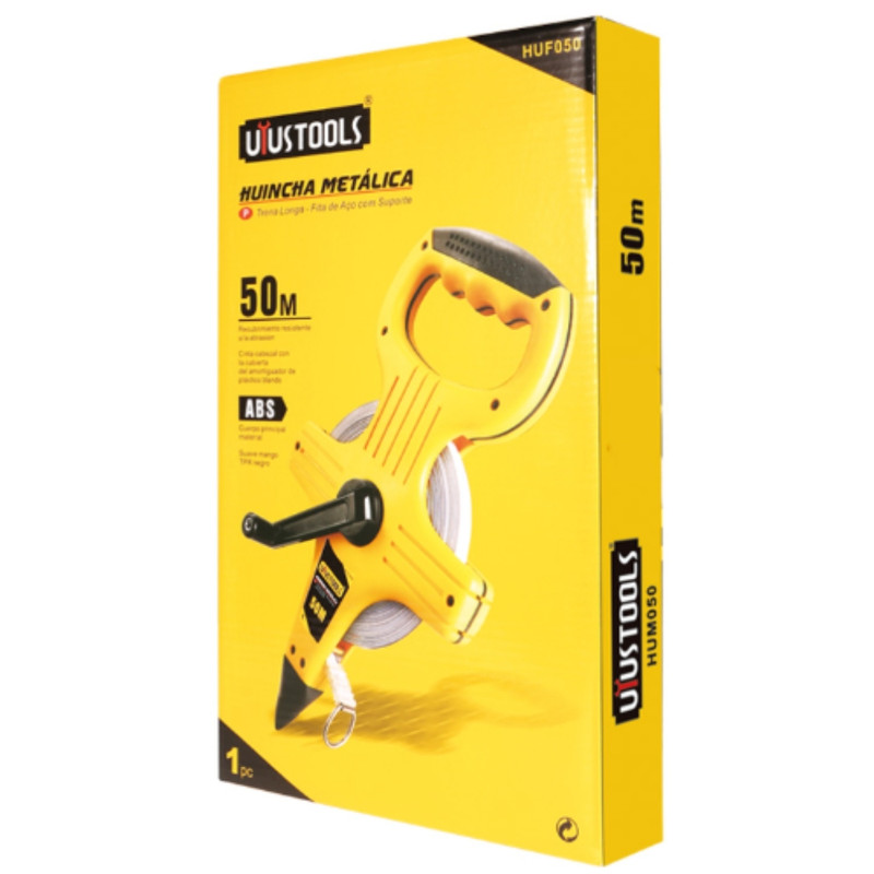 Cinta metálica de 50 metros diseñada para trabajos exigentes donde se requiere máxima precisión y resistencia. Su marco reforzado y mango ergonómico permiten un uso cómodo y seguro en obras pesadas y mediciones de alta demanda. Largo 50 m; Material acero; Marco reforzado; Mango ergonómico