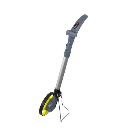 Rueda medidora digital de alta precisión para trabajos de replanteo, agrimensura y mediciones extensas. Su display electrónico permite lecturas rápidas en metros y centímetros, e incluye asa ergonómica y plegado compacto para transporte fácil en faenas.
