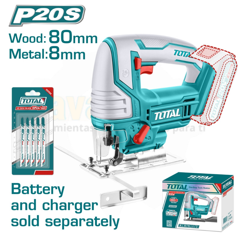 velocidad TOTAL 20V (3000 RPM). Corta madera (110mm) y metal (12mm). Incluye